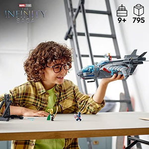 LEGO Marvel The Avengers Quinjet 76248, Spaceship Building Toy Set with Thor, Iron Man, Black Widow, Loki and Captain America Minifigures, Infinity SagaLEGO Marvel The Avengers Quinjet model building toy features an authentic recreation of the legendary Super Hero aircraft with iconic charactersThe collectible Avengers spaceship features an opening cockpit, passenger area, rear section, a retractable undercarriage and adjustable wingsThe Marvel Avengers buildable toy comes with a detachable display stand and a choice of 2 sticker sheets with Avengers or S.H.I.E.L.D. insigniasIncludes 5 LEGO Marvel Avengers minifigures: Black Widow, Thor with his hammer, Iron Man, Captain America with his shield and Loki with sceptreKids can open the top section and place Black Widow, Thor, Iron Man and Captain America inside while Loki sneaks in through a rear entranceThis LEGO Avengers Infinity Saga with toy spaceship set makes a great birthday gift or any-day treat for super hero kids Ages 9 plus years oldEnter a new world of building; builders can zoom in, rotate and track their progress using the fun, intuitive LEGO Builder App for smart devices