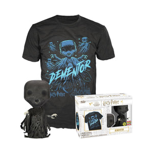 Funko Pop! & Tee: Harry Potter - Dementor - MThe Dementors have left Azkaban and are on the hunt for an escapee in your collection! Be sure to practice summoning your Patronus before you open your doors to this Dementor Pop! & Tee setThe front of this short-sleeved tee features Pop! style Dementors in a vibrant blue motif, with the Hogwarts silhouette detailed below“Dementor” is lettered in light blue font across the printThis black, crewneck tee is perfect for strolling the grounds of Hogwarts or lounging at home! This Pop! & Tee set comes with a glow-in-the-dark Pop! Dementor, eager to add a chilling new touch to your iHarry Potter collection! Vinyl figure is approximately 4.2-inches tallAdult Unisex Sizes: XS-3X, 100% Cotton
