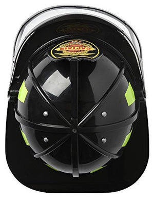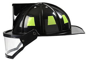 Aeromax Firefighter Helmet with Movable Visor, Black, Adjustable SizeDURABLE AND QUALITY construction to last for hours and hours of fun.INCLUDES one plastic helmet with movable visor and adjustable headband.DETAILED with movable visor, bright safety markings around outside and fire chief emblem on frontCOMFORTABLE with fully adjustable headband. Makes for a quality fit for any young or old firefighter enthusiast.INTENDED for girls, boys, men, or women ages 3 to 99. This item has been tested to meet USA safety standards for consumer products.Great construction with durable plastic and great attention to detail. A great match for the Aeromax Firefighter suits in Black or Tan.