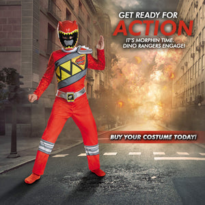 Red Power Rangers Costume for Kids. Official Licensed Red Ranger Dino Charge Classic Power Ranger Suit with Mask for Boys & Girls, Large (10-12)