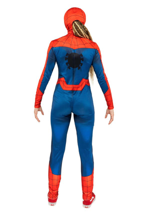 A Spider-verse of Options Marvel Comics and their film and TV adaptations have given us whole worlds of interesting possibilities. (If you thought Loki and his various variants were interesting, the unique versions of Spider-Man just may astonish you!) They've got dark detectives from Noir mysteries, robots and anime girls full of hype and genius ideas, and stories where Peter Parker plays the support role and we instead get the heroics from Spider-Gwen and others! So, there's nothing stopping any of us from potentially becoming the Spider-Hero of our own world. (Sort of a funny thing to ponder. What would our own world's version of Parker be, given that Peter & Co's stories are already so well known!?) We're depending on you to figure out the answers. Of course, we're here to give you the costume. We can't expect you to do all the work! Product Details Step into the role of this universe's lifetime when you step into this Classic Spider-Man costume for women. This printed jumpsuit has all the iconic looks you're familiar with from the blue base to the red accents and black linework that makes up the webbing design. With Spider-Man's symbol emblazoned on the chest, the illusion of tall matching boots, and the addition of the jersey knit mask (with mesh vision ports), you've got everything you need to look the part! A Marvelous Multiverse Whether you are going out on your own or teaming up with friends and family for an amazing outing, this Women's Spider-Man costume is sure to be a hit! Select a few more variations on the Spider-Man look to create your very own Spider-verse or pick up a few of these to recreate the classic "Wait, it's Spider-Man!" meme with a cast of Spider-Women! There's no limit to the options at your disposal with this quick-and-easy costume. - Jumpsuit - MaskSize: Medium95% polyester 5% spandexSpandex jumpsuit has hidden zipper down center backAll over graphics of Spider-ManStretchy jersey knit has mesh eye holes that allow limited vision